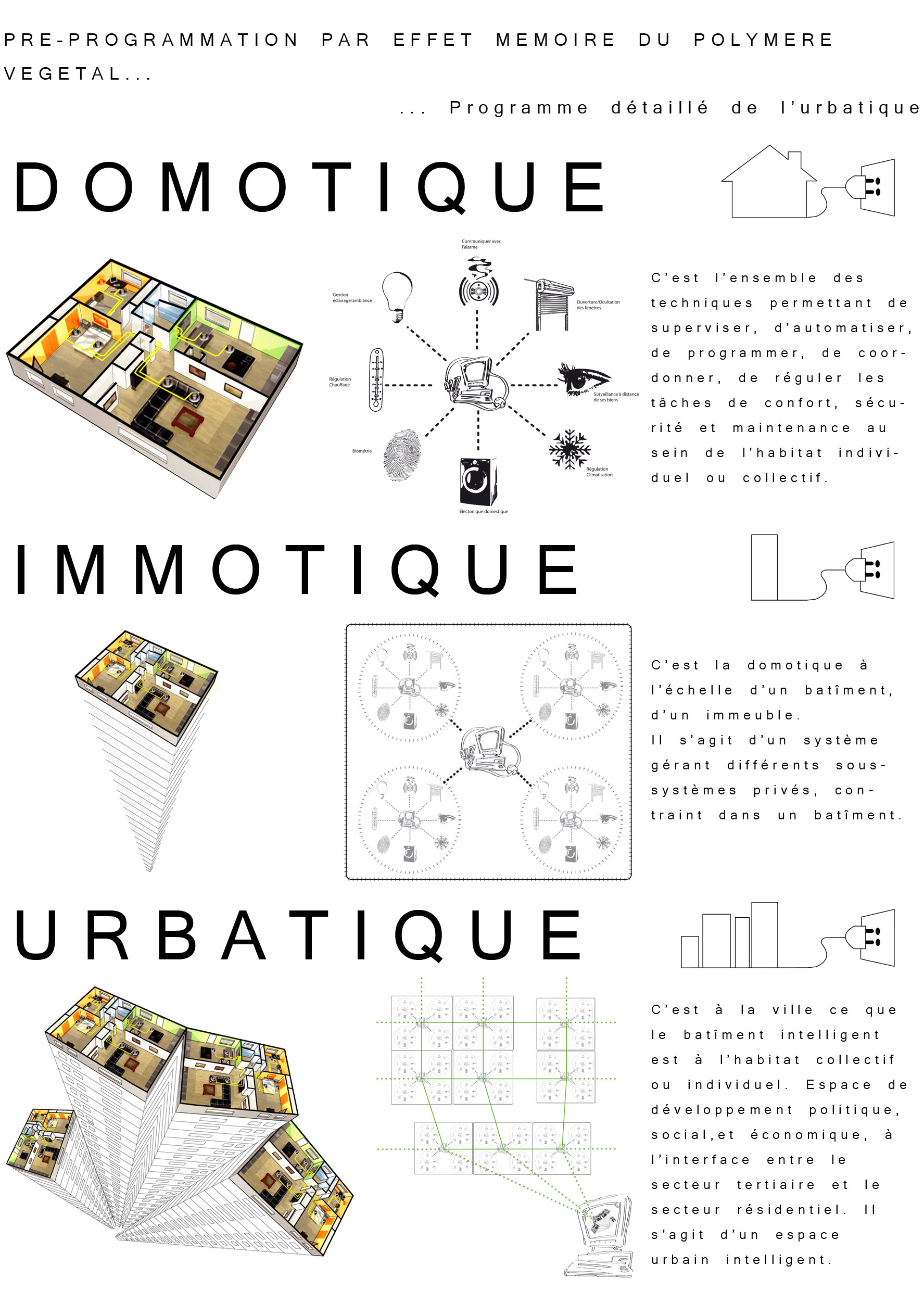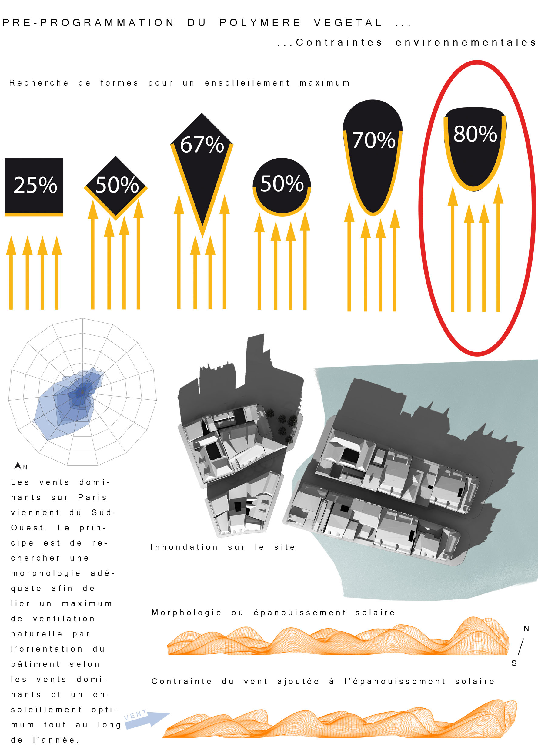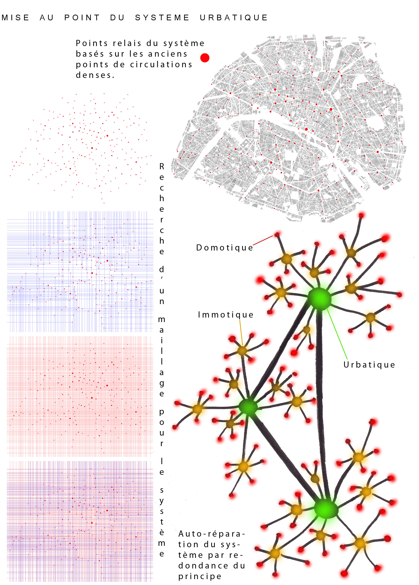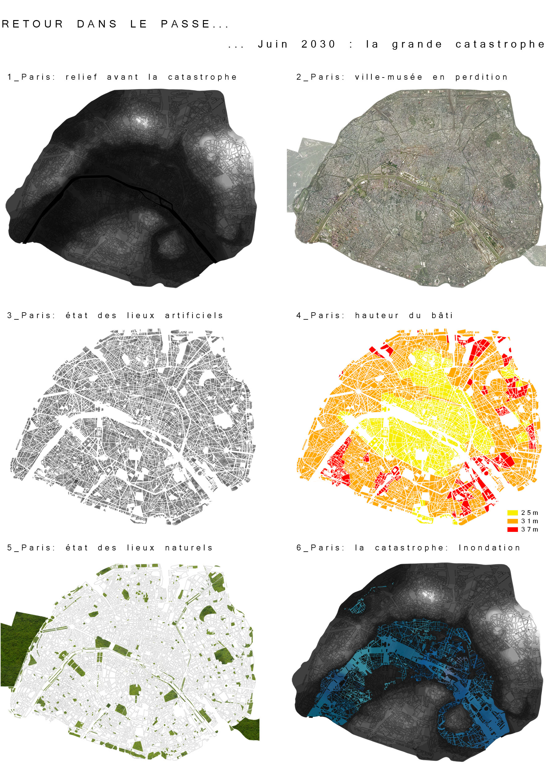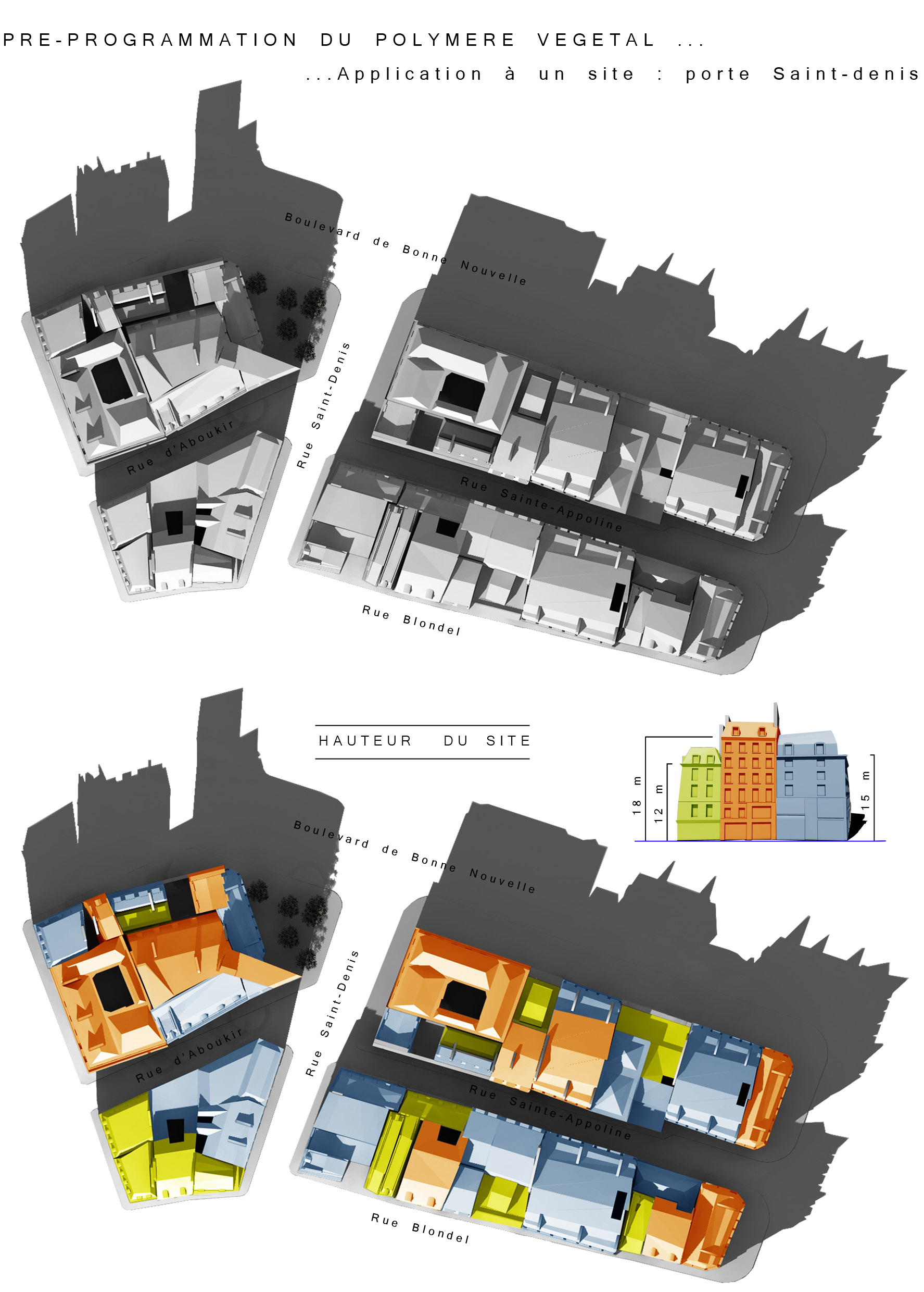 2100 : 10 milliards d’hommes sur Terre dont la moitié vivra dans les villes. Même si l’échéance parraît éloigné, il est de notre devoir de nous en préoccuper. D’amorcer une démarche comportementale, d’imaginer notre futur patrimoine. Aujourd’hui, la ville s’étend. Ses limites deviennent imprécises, comme floues. La ville se transforme, dessinant de nouvelles formes urbaines. Mais jusqu’à quel point ? La notion de densité soulève controverses et incompréhensions. La ville est un espace dense : elle facilite le mélange des fonctions et l’optimisation des réseaux. Plus économes en espace, les villes agglomérées offrent un espace public vivant, porteur de liens sociaux et d’échanges. Le problème actuel de la ville dense réside dans la définition de seuils de saturation du sol enrayant toute possibilité de constructions nouvelles. Toutes possibilités d’évolution, de transformations internes, de poursuites d’un futur patrimoine. La ville cantonnée ne risque-t-elle pas de se figer et de perdre sa vitalité ? Tout pousse l’homme d’aujourd’hui a se questionner sur son futur, lié étroitement avec la planète. De quoi demain sera fait ? Il devient urgent de se préoccuper de notre planete. Cependant pouvons-nous encore inverser la tendance ? L’homme, individualiste et materialiste, commence juste à prendre conscience de ce futur en suspend. Seulement il est trop tard, les dégats ayant déja été faits, nous ne pouvons aujourd’hui que limiter les impacts futurs. Plusieurs problemes se posent à l’heure actuelle, concernant ET notre planète ET les sociétés qui s’y créent. Il suffit de regarder autour de nous, d’ouvrir les yeux, pour découvrir où les travers de la société nous emmenent. La vision de notre futur , quelle soit littéraire ou cinématographique, n’est guère agréable : des sociétés totalitaires . Il s’agira d’expérimenter les possibilités d’avenirs de société et planète.CorpusParler de « canopée » revient à parler d’un concept, d’un principe. Afin que l’expérimentation d’une canopée urbaine s’impose d’elle-même, expliquer les étapes d’une telle démarche est nécéssaire. Au départ, le lecteur doit se détacher de ce qu’il connaît, de ce qu’il considère comme sa réalité. La seule, l’unique. Cette obstination a vouloir toujours tout expliquer. Il se doit de voir au-delà de ce qu’il connaît, ou croit connaître, d’extrapoler son référentiel, voir même de le mettre de côté un instant, afin de s’ouvrir sur une possible relecture de son environnement. Sa grandeur ne se trouve pas confinée à ce référentiel géocentrique mais s’organise de part et d’autre. En se déformatant de sa société et de ses modes de pensées, les œillères tombent laissant apercevoir des perspectives d’avenir bien différentes. Une fois délesté de ce superflu, l’homme peut entreprendre et comprendre l’ascension canopique. Ainsi, la planète Terre n’est rien d’autre qu’un organisme vivant, appelé Gaïa, au sein d’un organisme plus gros. Je parle, ici, d’un organisme homéostasique, c’est-à-dire permettant une caractéristique d’auto-régulation. Extrapolons un peu : le système solaire serait alors un système lui aussi homéostasique dépendant de l’auto-régulation propre des organismes le composant…etc… L’infiniment grand et l’infiniment petit s’imbriquent alors complètement. Ils dépendent l’un de l’autre. Gaïa évolue, se modifie et maintient ce fameux équilibre depuis 4,55 milliards d’années. Seulement, il y 15 000 ans, un sous-organisme s’est mis à proliférer, participant au système général dans un premier temps, il faisait partie intégrante du système. Puis, progressivement, semblable à un virus,envahissant chaque recoin de son hôte,. Il devient nuisible. Il donne la fièvre à Gaïa. Finalement, et si, l’infiniment grand pour le référentiel humain n’était que l’infiniment petit dans un autre référentiel ? L’ Homme, détaché de son référentiel naturé et sans aucun repère, peut ainsi être réceptif à de nouveaux stimuli. Il est capable de relire sa réalité, pour voir au-delà. Il est prêt à étudier un écosystème auto-régulateur présent dans son référentiel: la forêt Amazonienne. Il peut se projeter, transposer sans conformisme ni limites. Les troncs d’arbres massifs et imposants deviennent des bâtiments, les différents génotypes, des fonctions, les lianes grimpantes et sautillantes se transforment soudainement en un réseau principale reliant les réseaux de sève interne aux arbres comme des réseaux secondaires. Ces lianes sont le liant de cette ville végétale. Les individus remplacent alors les feuilles composant cette densité ressentie en ville. Une vision plus extrême tendrait vers: le sous-bois devient la ville d’aujourd’hui, les troncs d’arbres sont une foret de poteaux, soutenant la masse de la société comparable au feuillage. De nature insatisfaite, l’Homme cherche plus loin. Il ressent la présence d’un élément supplémentaire, semblable à un élément protecteur. La pluie atteint à peine le sol, les rayons du soleil ne parviennent pas jusqu’à lui non plus, et la biomasse entreprend l’ascension vers les hauteurs. Ainsi dans l’écosystème végétal il existe un endroit de concentration, de rencontres, de contact entre ces éléments. Il s’agit de la canopée. Une interface entre la Terre et l’atmosphère. Comme le liant entre deux mondes juxtaposés. Un espace d’absorption, de transformation, d’adaptation. Cette canopée représente la pièce manquante de l’écosystème humain afin de permettre l’auto régulation naturel du système mis dans un nouveau référentiel. Un biologiste explique très bien l’image issue de ce concept. « Quand on marche dans la forêt, on se trouve sous la moquette. Le dessus de la moquette, c