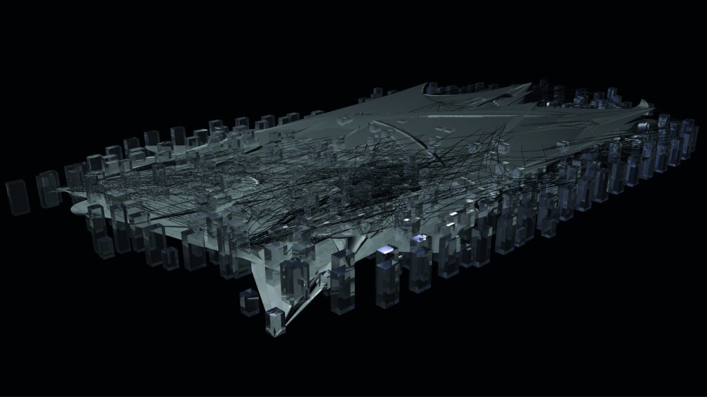 Partons de l’hypothèse selon laquelle la Terre est un organisme vivant, appelée plus communément Gaïa (James Lovelock). La ville devient alors un amat de matière vivante capable de se déplacer en fonction de ses besoins afin de maintenir l’équilibre nécéssaire à sa survie. Ainsi, apparaissent des points d’impacts négatifs ou positifs, correspondant respectivement à l’absorbtion et au rejet ( étapes de la digestion ). La matière se déplace du négatif vers le positif, la ville se mange elle-même pour mieux se développer… Comme le phénix renaît de ses cendres, la ville se régénère grâce à sa matière.PROJET