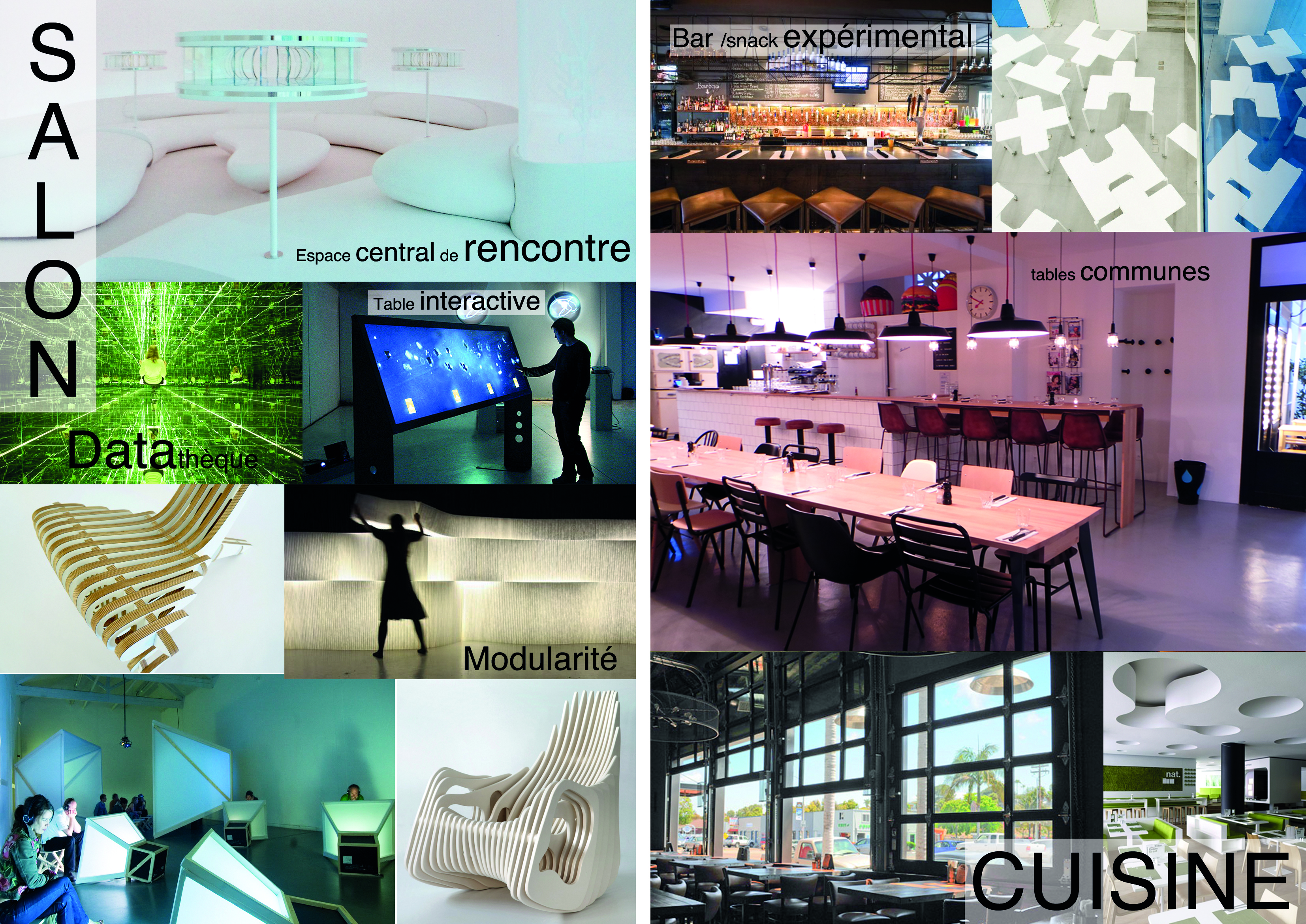 3 – Les pièces (planche 3) Chaque pièce d’une maison a son identité, son usage. Il s’agit de pouvoir identifier d’un seul regard, grâce à un meuble, un accessoire, dans quelle pièce nous nous trouvons. Chaque pièce a son ambiance et permet une expérience propre. De nouvelles salles peuvent voir le jour, comme la Datathèque (anciennement bibliothèque) ou le cabinet des curiosités reprenant des objets anciens comme un musée.
