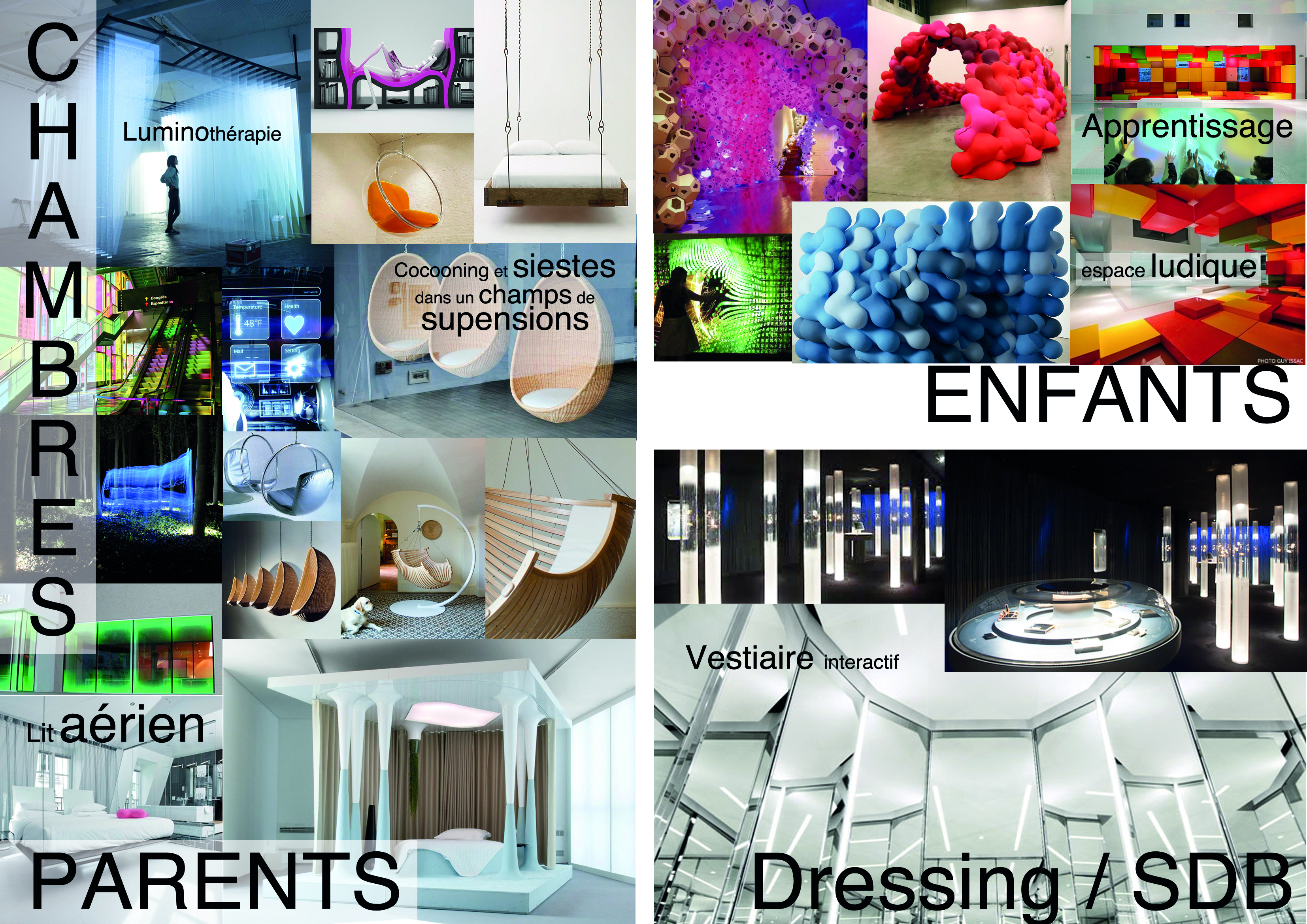 Telle une architecture du futur, l’espace se crée et se modifie au fil des envies. La scénographie de la maison du futur se décompose en 3 temps :